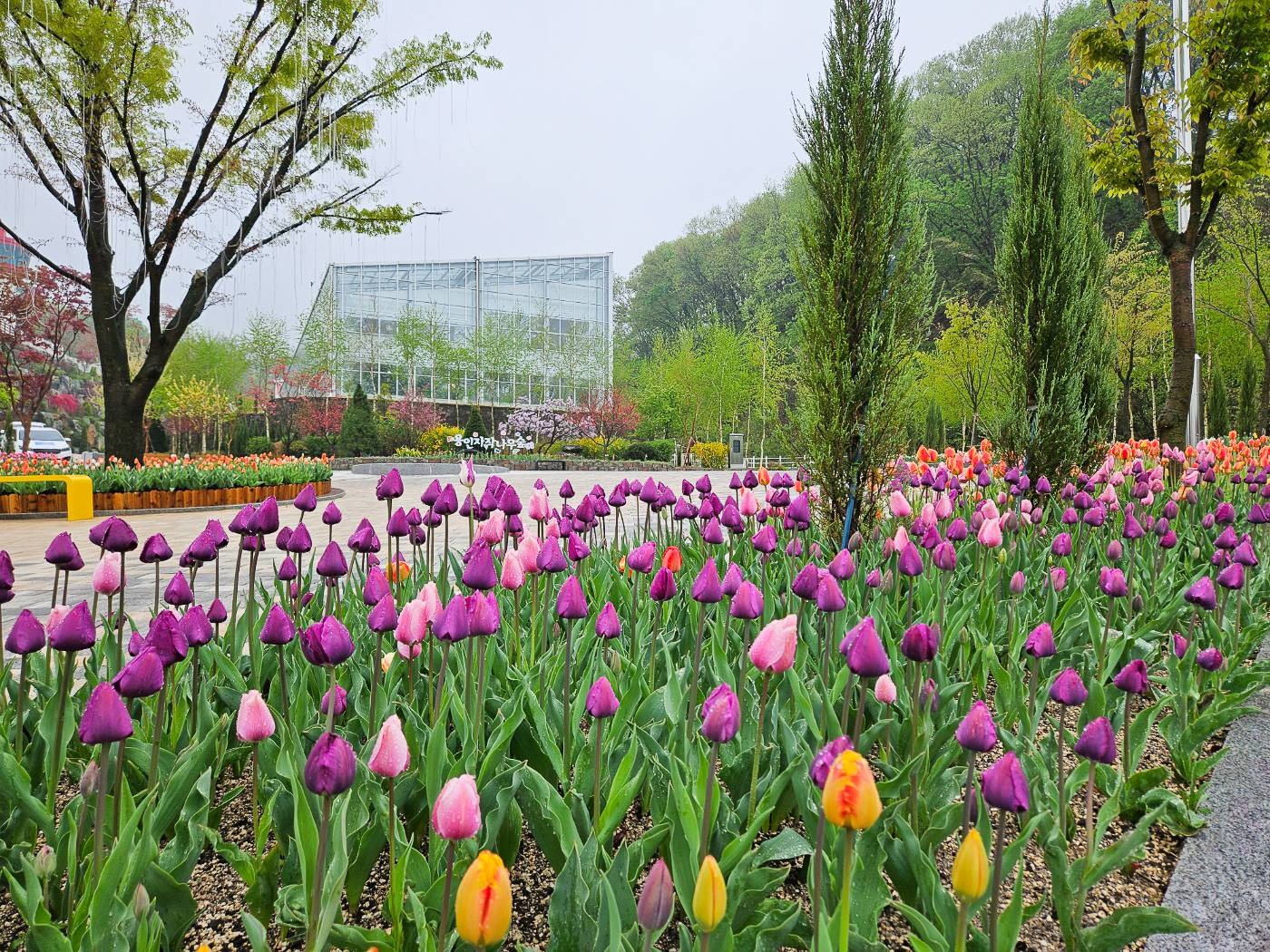 자작나무, 소나무, 단풍나무 등 다양한 수종이 어우러져 사계절 다른 매력을 선사하며, 특히 봄에는 튤립, 벚꽃, 진달래 등이 화사한 색감을 뽐냅니다.